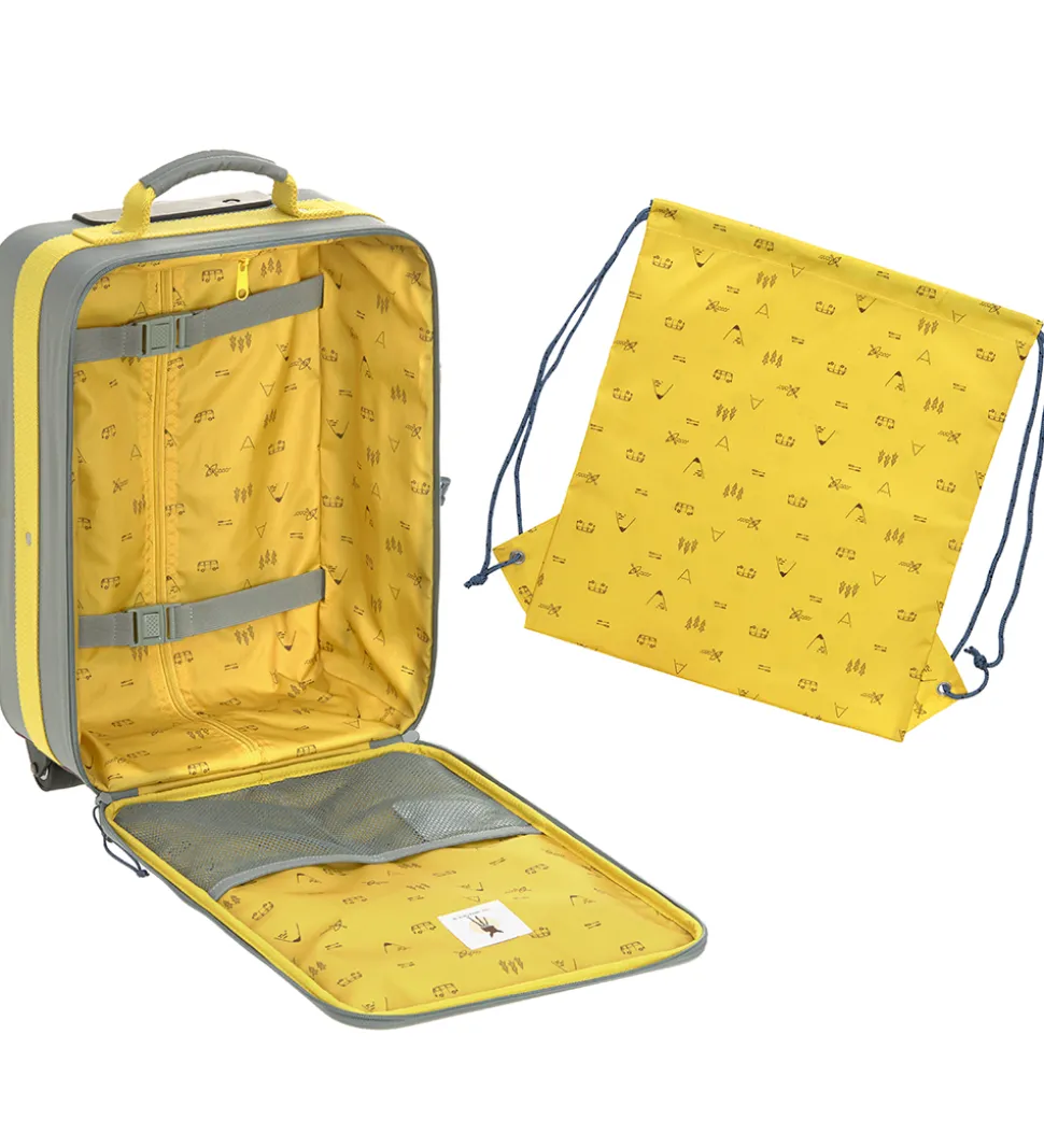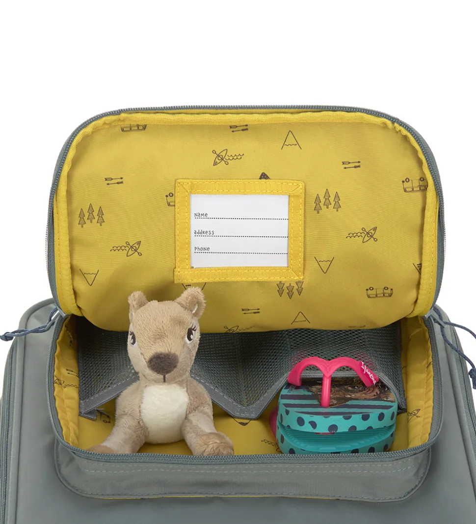 Lässig kufferten har en smart størrelse til opbevaring og transport og er udstyret med hjul for nem bevægelse. Indeni består den har ét stort rum, med en ekstra pose til f.eks. gymnastiktøj, samt er der to små mesh lommer på låget. Kufferten har smarte hanke på både siden og i toppen så den er nem at løfte, og så har den en lomme til drikkedunken.