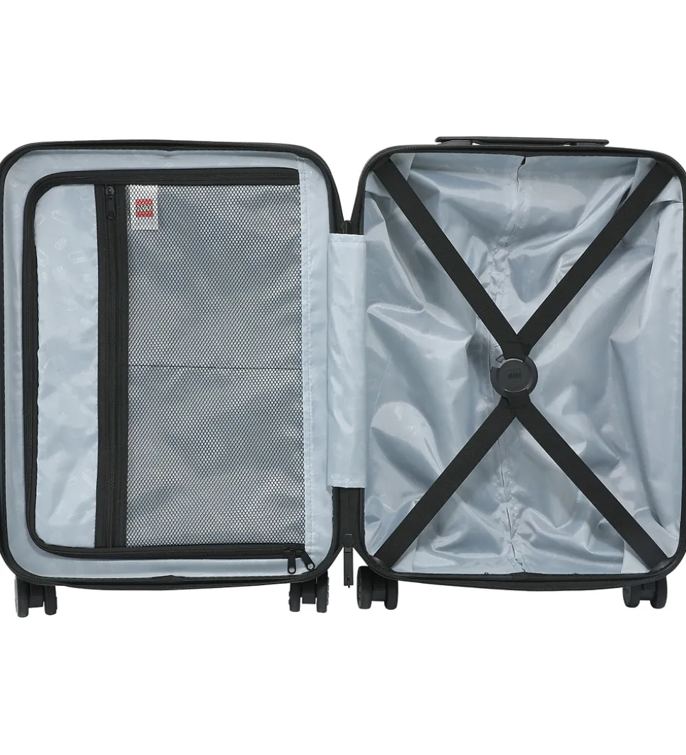 Kufferten har robuste hjul og et teleskophåndtag, der sikrer nem transport. Kufferten har ét stort rum, som åbnes med lynlås, og det er delt op med flere praktiske lommer, inkl. netlommer, og desuden en elastisk kompressionsstrop. Perfekt til rejsen.