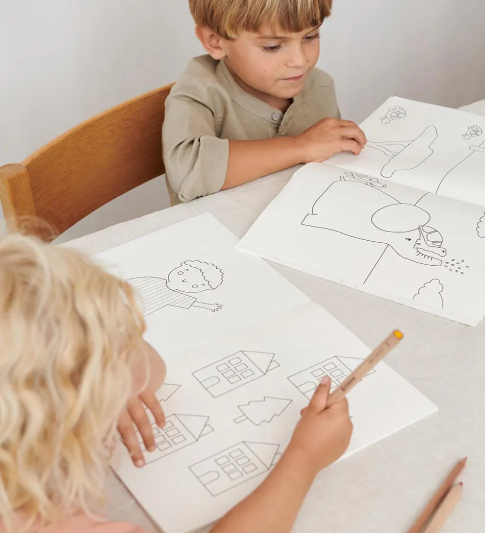 Liewood malebogen er i A4-format består af 48-60 af kraftigt papir med ufarvelagte illustrationer.