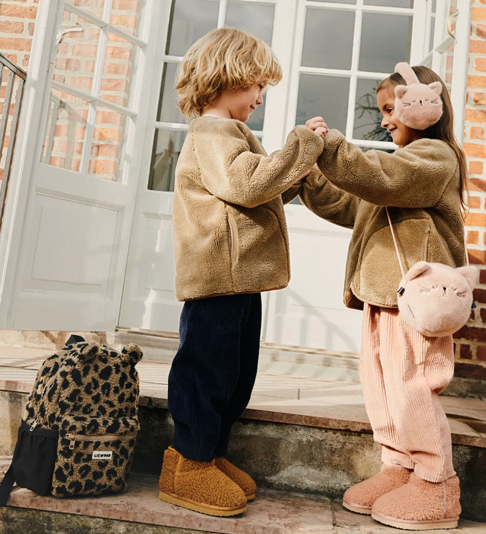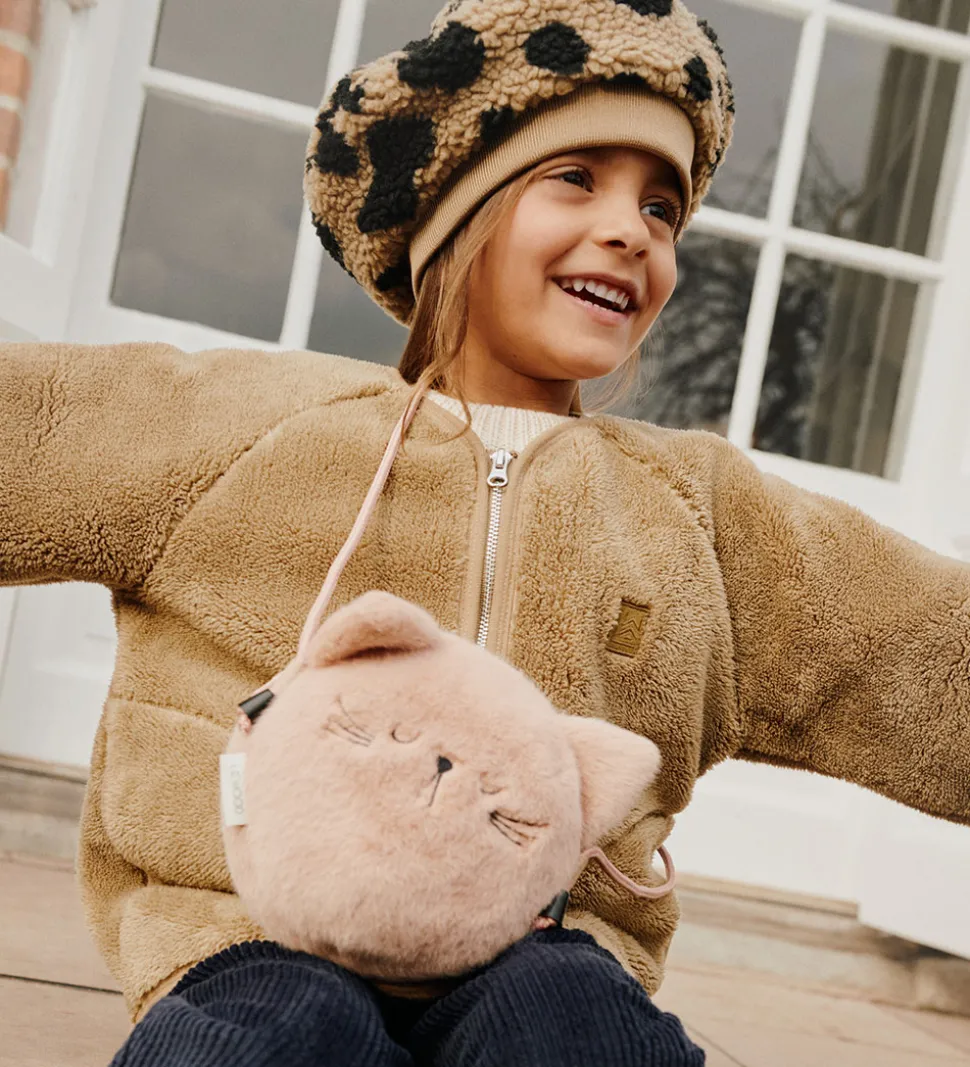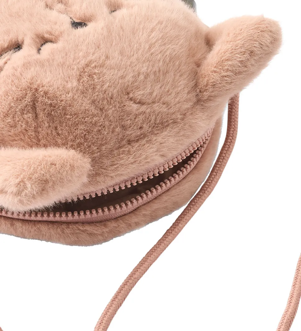 Liewood tasken har et fint udtryk med blødt plys, der gør den både unik og stilfuld til de mindste. Skuldertasken har en rund form og en stor lomme, der åbnes med lynlås, samt en justerbar skulderrem.