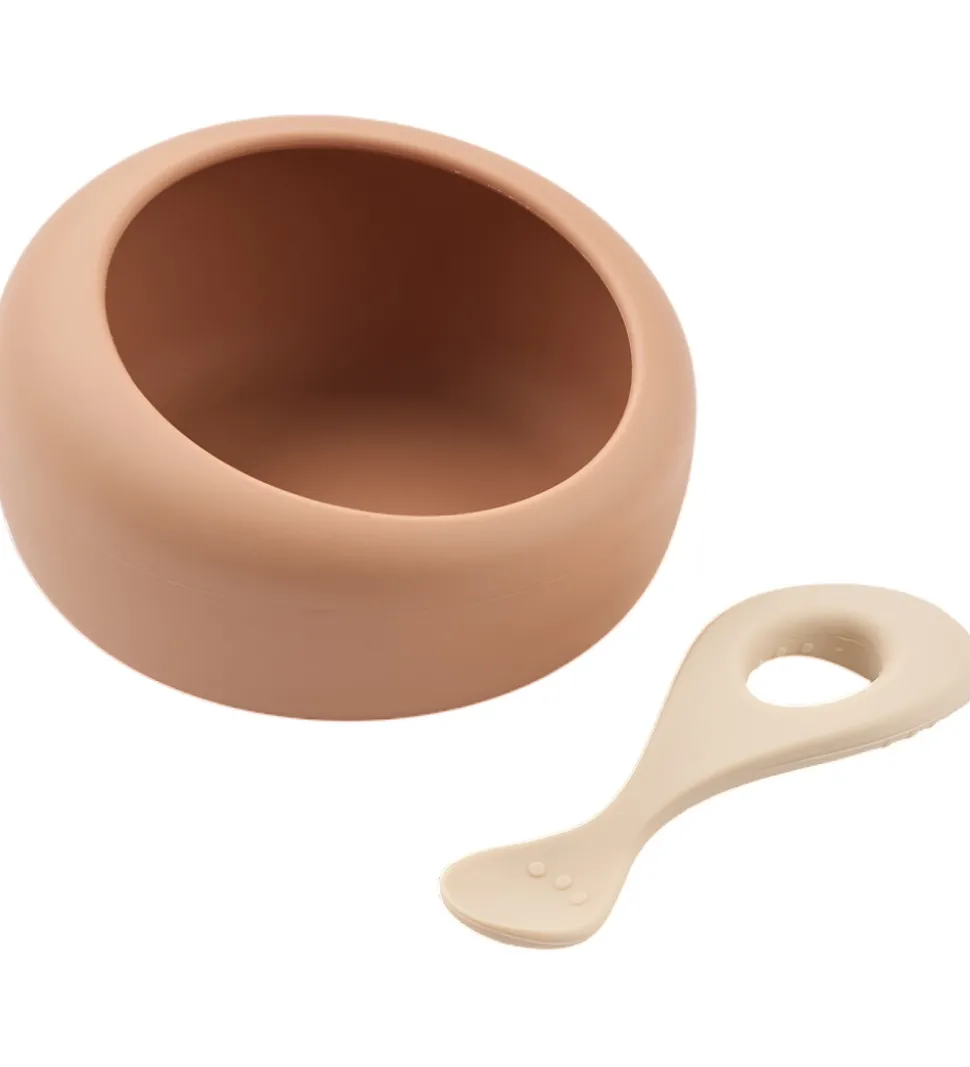 Dejligt Liewood spisesæt der inkluderer en rund skål i rosa og en ske i beige. Liewood spisesættet er både funktionelt og stilfuldt.