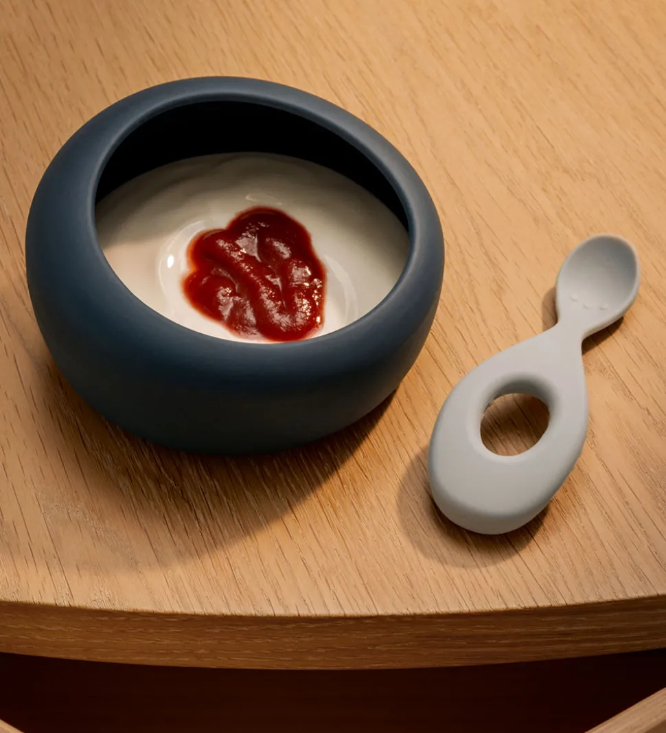Liewood skålen har et buet design, som gør det nemmere for maden at blive på den medfølgende ske, og støtter dermed barnets selvtillid, mens det lærer at spise selv.