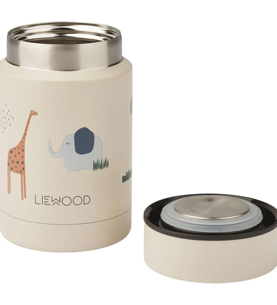 Liewood termobeholderen har et skruelåg. Termobeholderen kan bruges til føde- og drikkevarer, og har dobbelte vægge i rustfri stål, så den både kan bruges til koldt og varmt. Termobeholderen er ideel til f.eks. grød og snacks.