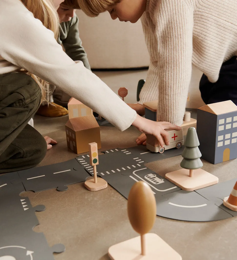 Liewood busstoppestedet har et enkelt og fint udtryk, og det er godt at lege med og ser flot ud på børneværelset.
