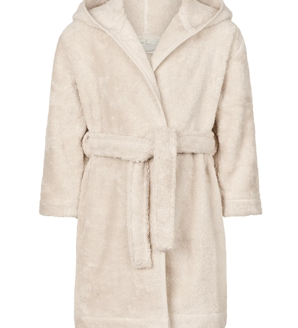Flot Lille Kanin badekåbe i ensartet cremehvid med et broderet, diskret logo.