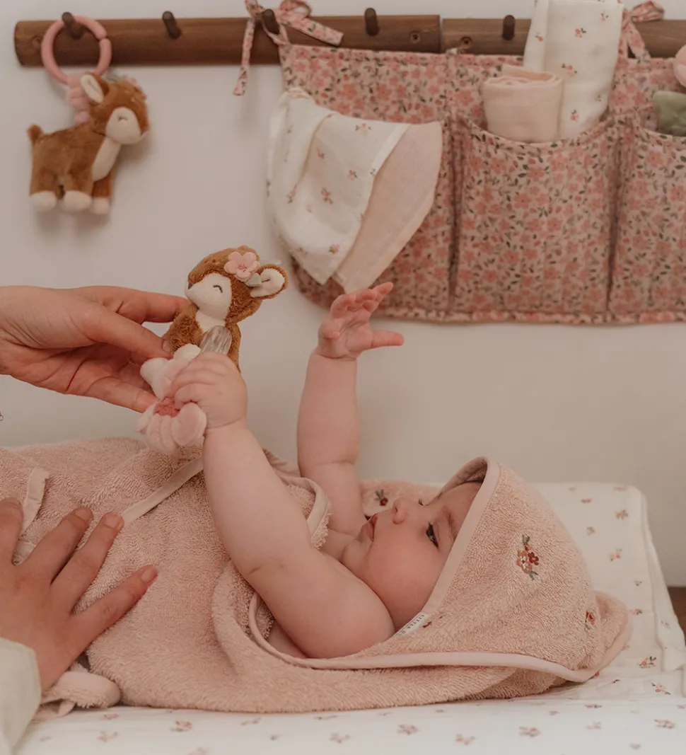 Sød Little Dutch ringrangle med en plysset, blød bambibamse på.