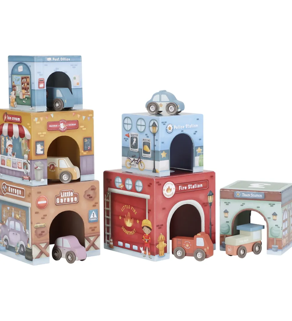 Underholdende Little Dutch stablelegetøj bestående af seks farverige pap-bygninger med matchende køretøjer, herunder blandt andet en brandstation, politistation og isbutik. De detaljerede print og de levende farver gør Little Dutch-legetøjet til en sjov oplevelse for de små.