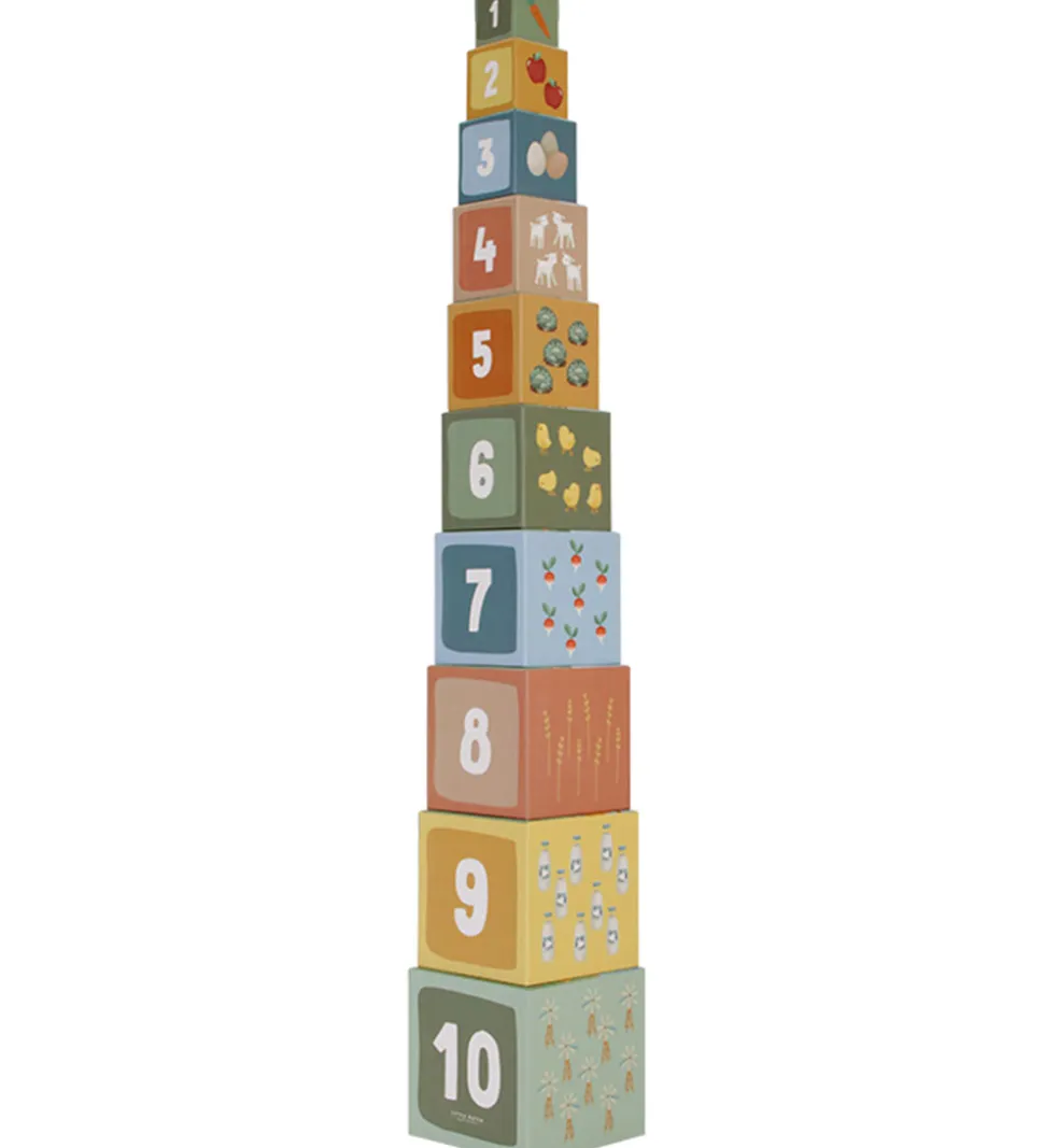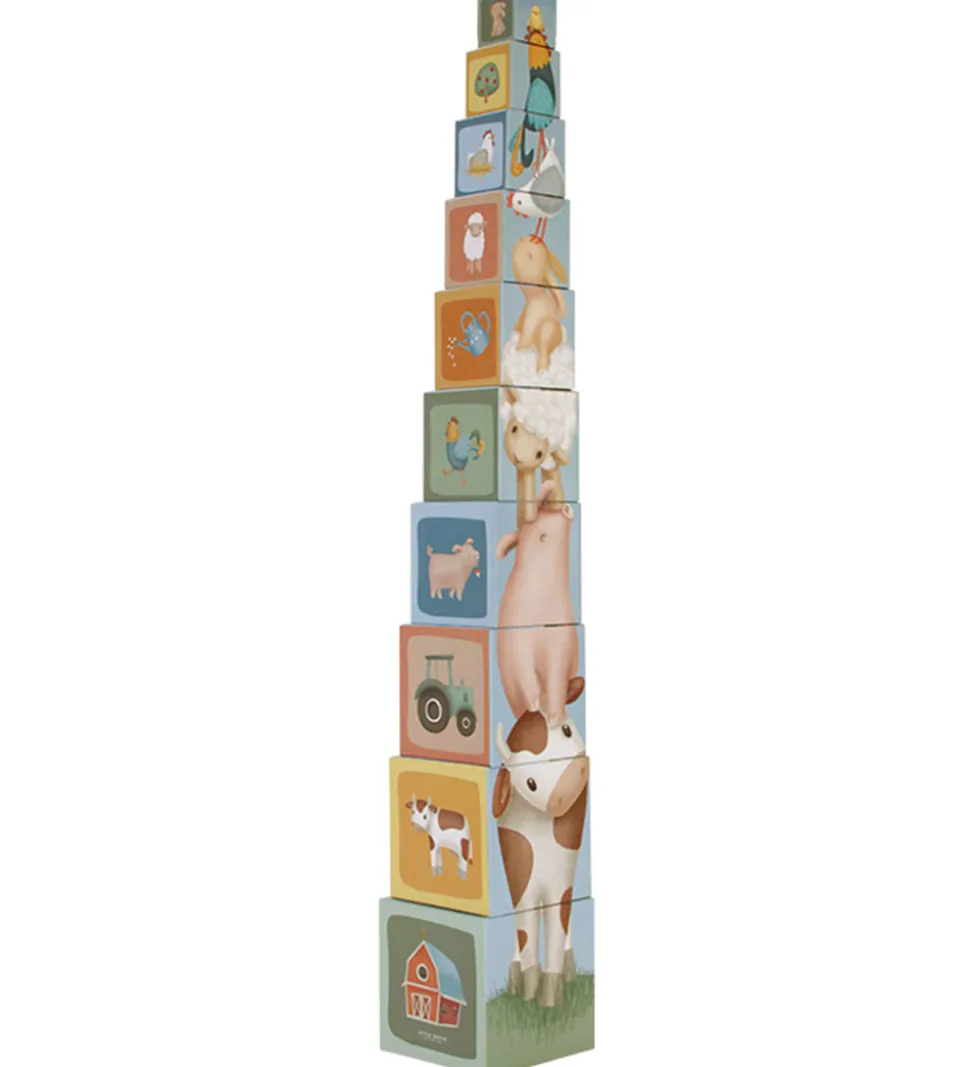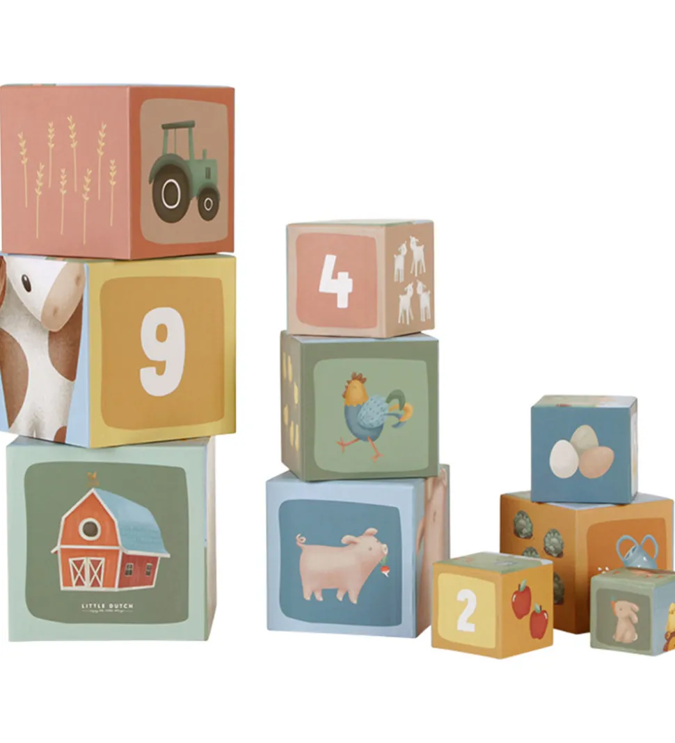 Flot Little Dutch stabletårn bestående af 10 firkantede klodser, der har motiver fra bondegården.