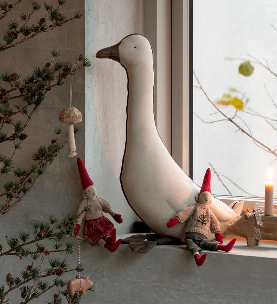 Maileg gåsen har en lang hals og i bagdelen er der små kugler, som giver den tyngde og gør at den kan sidde selv. Gåsen kan være med til at skabe en hyggelig julestemning på børneværelset eller et andet sted i hjemmet.