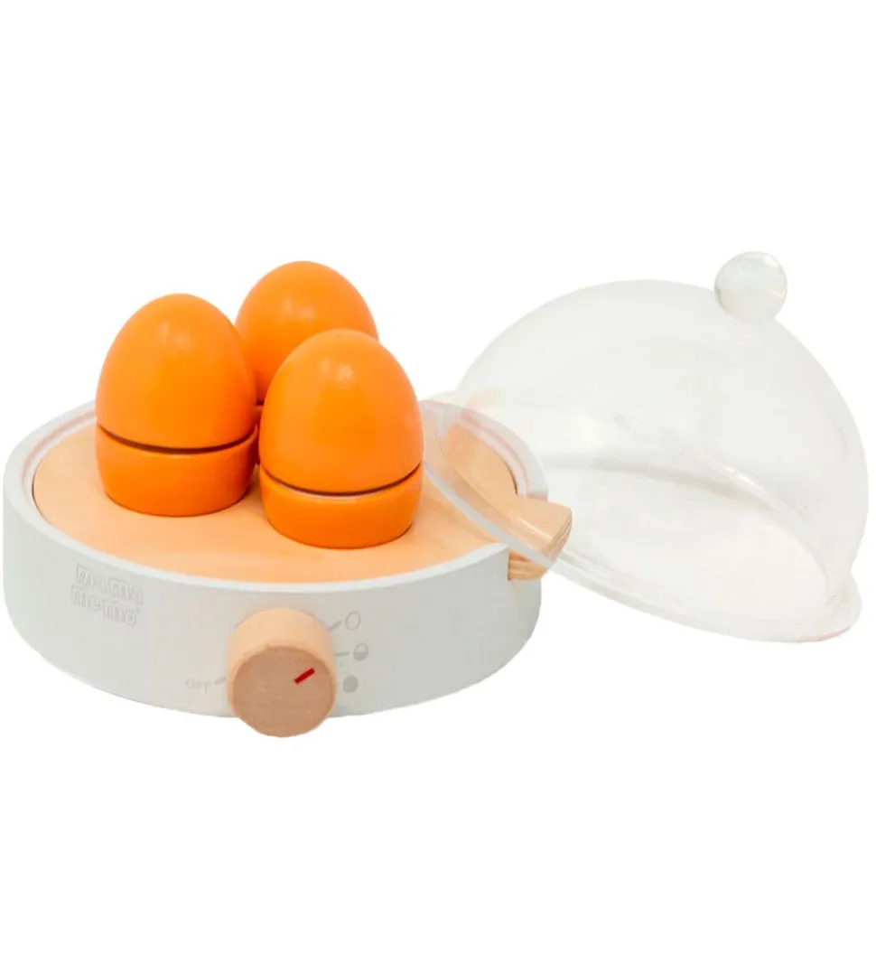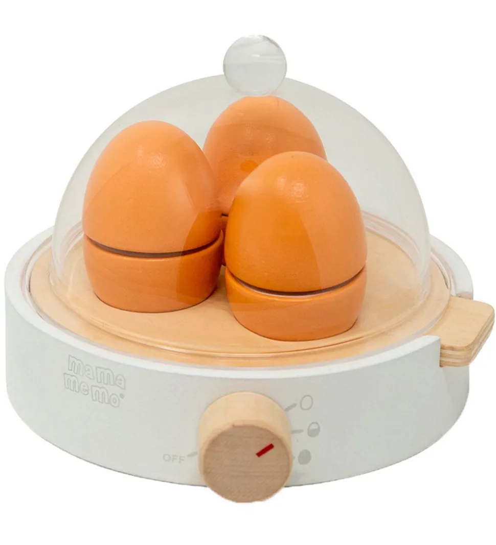 MaMaMeMo æggekogeren ligner den ægte vare og fortil er der en knap, man kan dreje på. Toppen er i gennemsigtig plast og kan tages af. Æggene består af to dele, som sidder sammen med velcro.