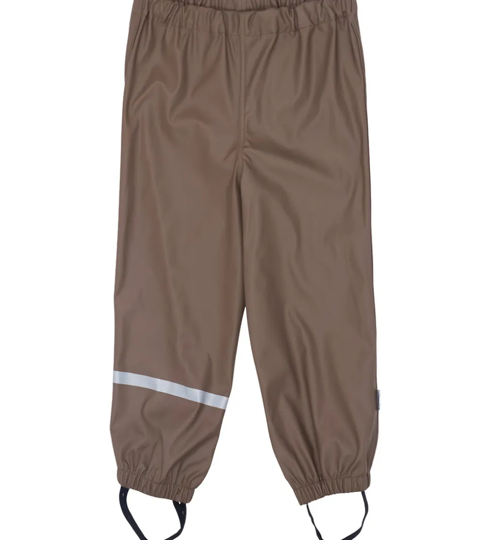 Fint Mikk-Line regntøj bestående af en regnjakke og et par regnbukser i ensfarvet, brunt PU.