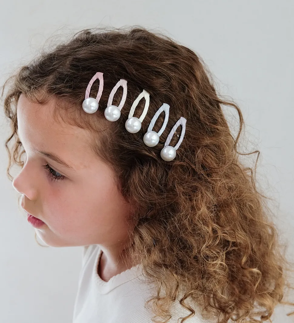 Seje Mimi & Lula hårspænder solgt i en 5-pak i rosa, creme og sølv nuancer og med perler.