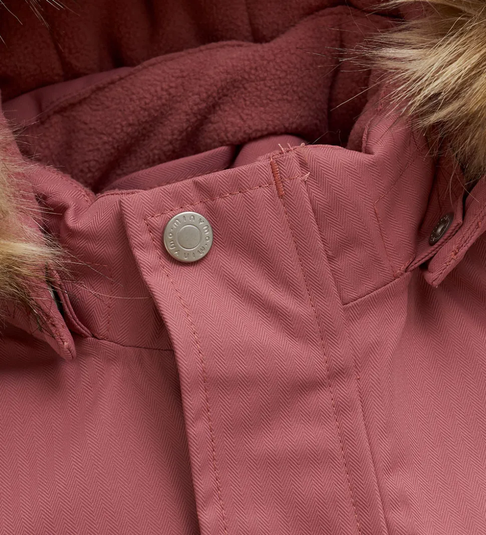 Smart Minymo flyverdragt i rosa med praktiske refleksdetaljer.