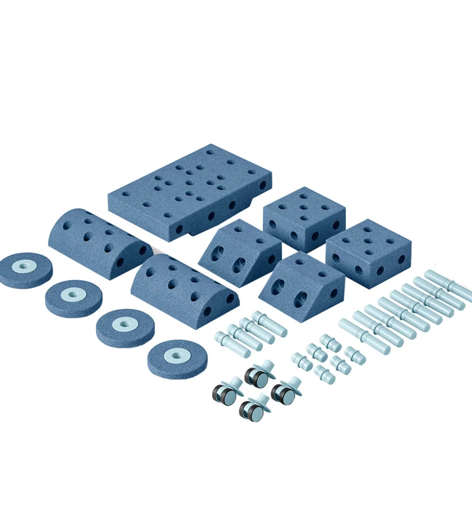 Sættet er lavet af genanvendeligt EPP-skum og fødevaregodkendt ABS. Det kan vaskes med vand og en børste, tages med i bad og endda også komme i opvaskemaskinen.