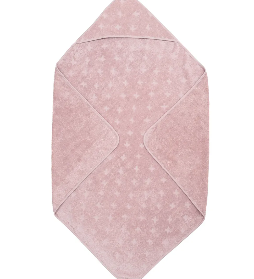 Müsli babyhåndklædet er i dejligt, blødt frotté og har en hætte til hovedet i det ene af hjørnerne.