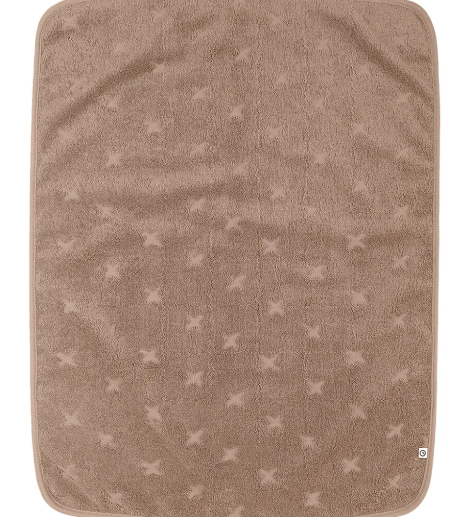 Smart Müsli håndklæde i lysebrun med et mønster af indprægede stjerner. Müsli håndklædet er i dejlig blødt og lækkert frotté og har en firkantet udformning med en smal kant hele vejen rundt.