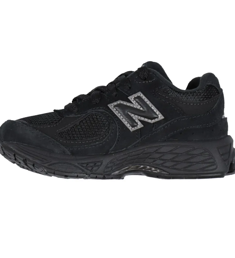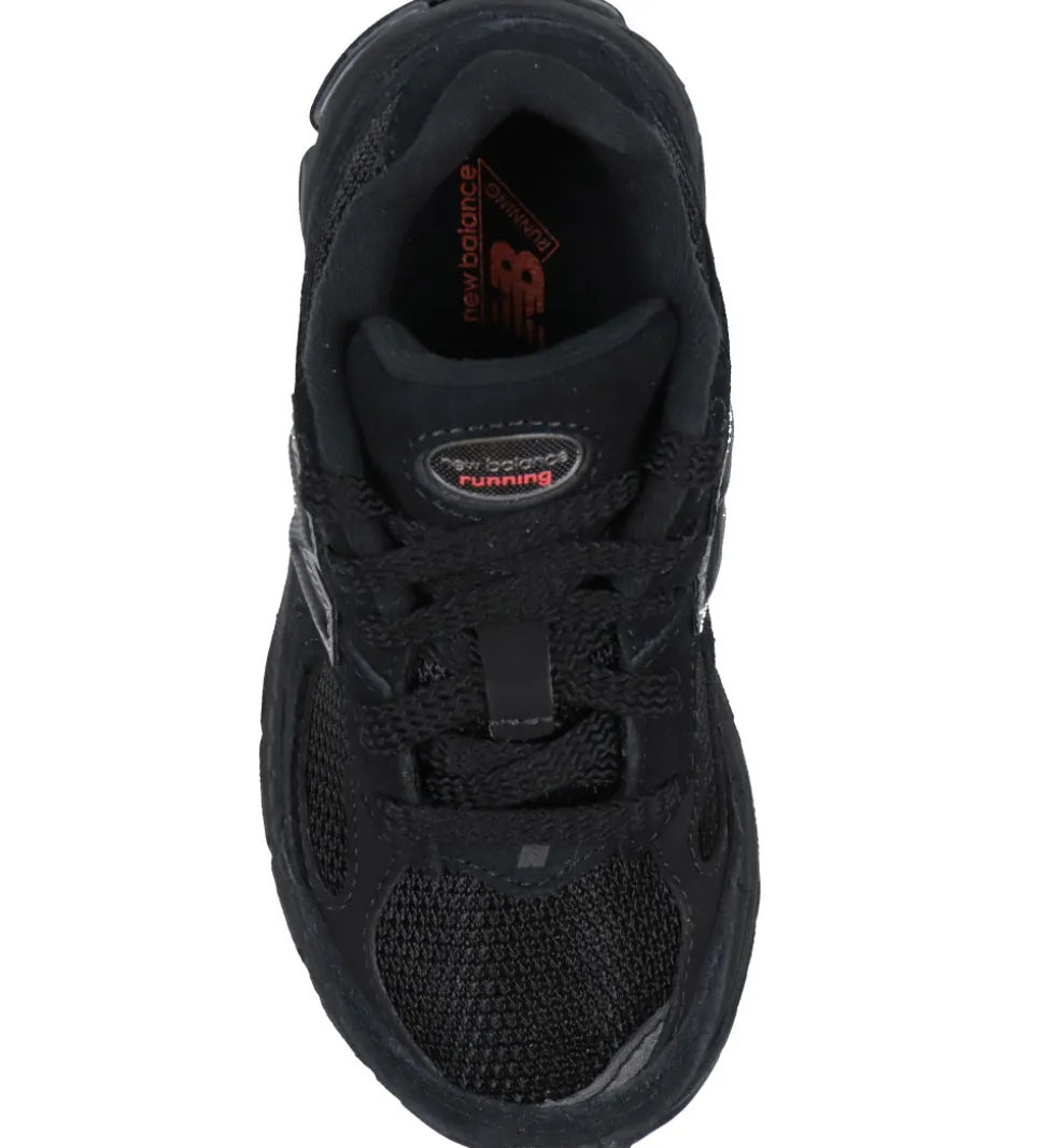 Stilfulde New Balance sko i sort læder, ruskind og tekstil. Skoene har et logo på siderne i sort med sølv kant samt detaljer i pink.