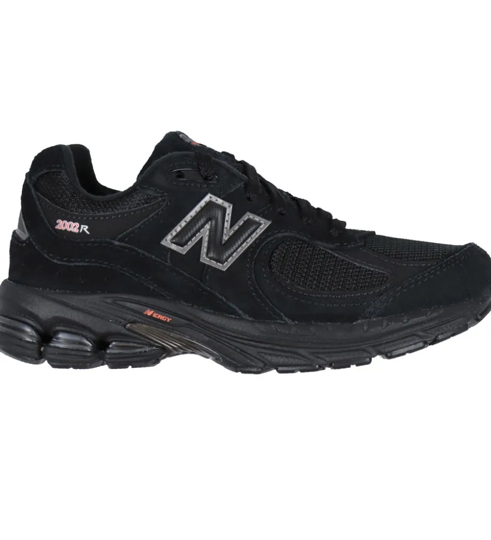 Smarte New Balance sko i sort læder, ruskind og tekstil. Skoene har et logo på siderne i sort med sølv kant samt detaljer i pink.