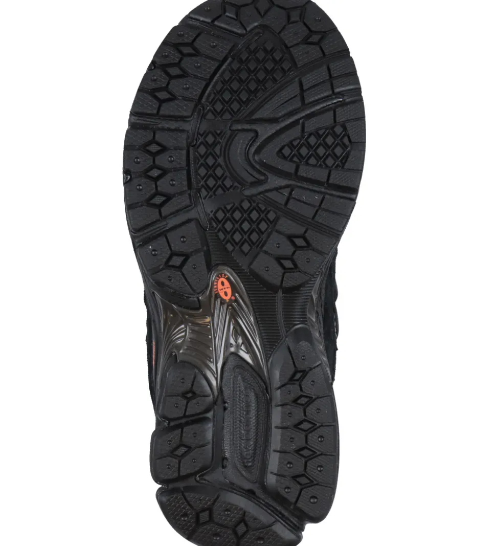 New balance skoene strammes med snørebånd over vristen. Indvendigt er der sort tekstil med godt polstring omkring åbningen og udtagelige indersåler. Skoene har kraftige ydersåler i letvægtigt materiale med et groft skridmønster under bunden, som giver et godt og solidt fodfæste.