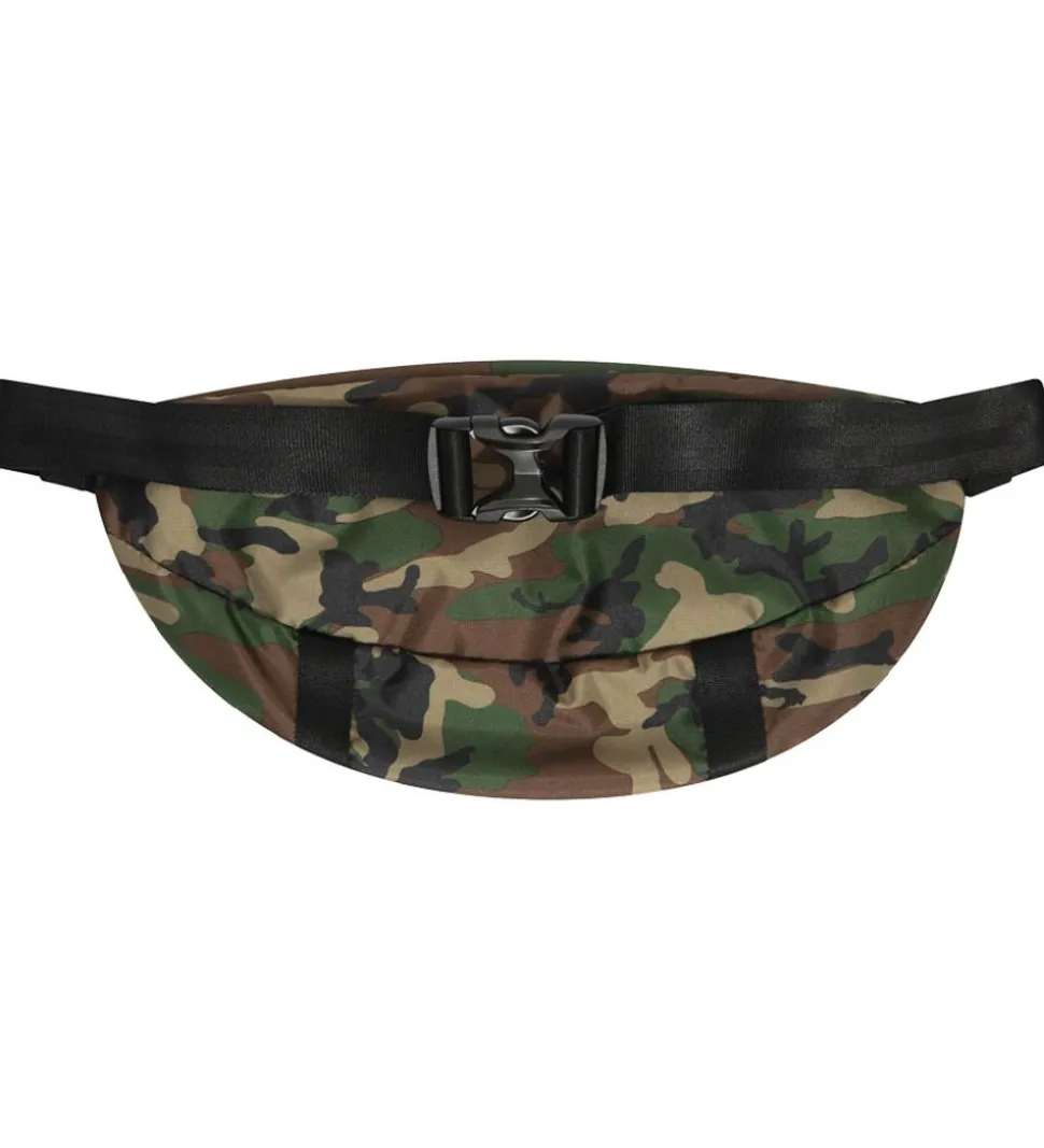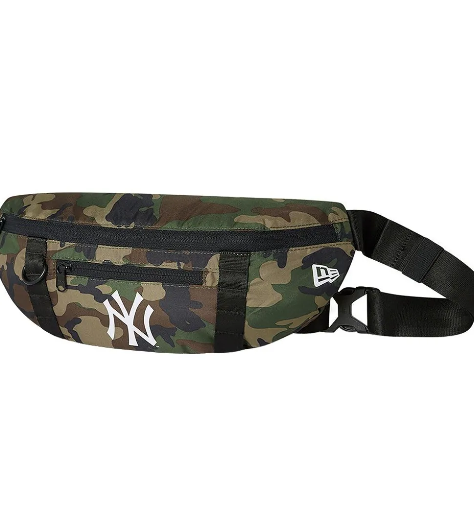 Flot New Era bæltetaske i grønne, brune og sorte nuancer med et sejt camouflageprint. Fortil er der et print af baseball holdet New York Yankees’ logo i hvid. I venstre side er New Eras logo, og i højre side er der et Major League Baseball logo.