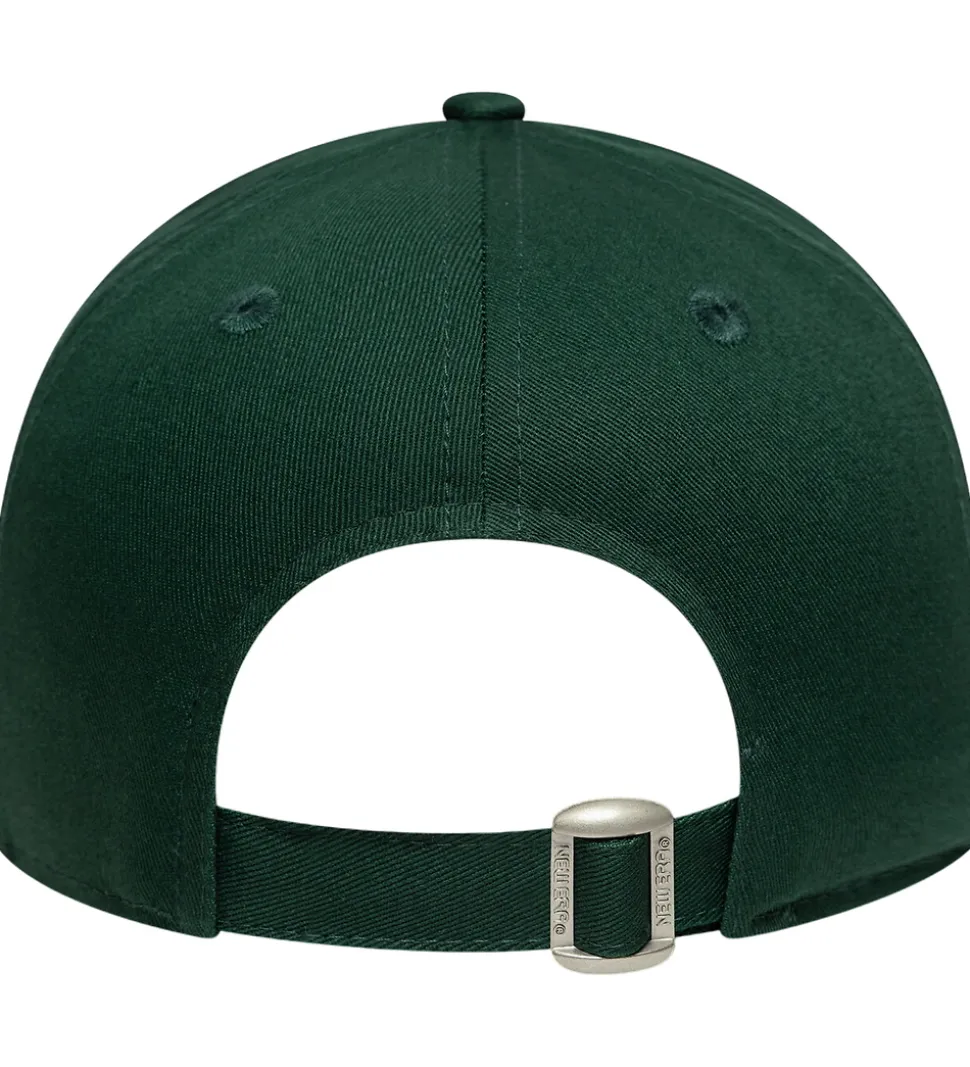 Smart New Era kasket i en mørkegrøn farve med et sødt, broderet teddybjørnsmotiv foran. Den har et klassisk design med seks paneler og en buet skygge, der giver et tidløst udtryk.