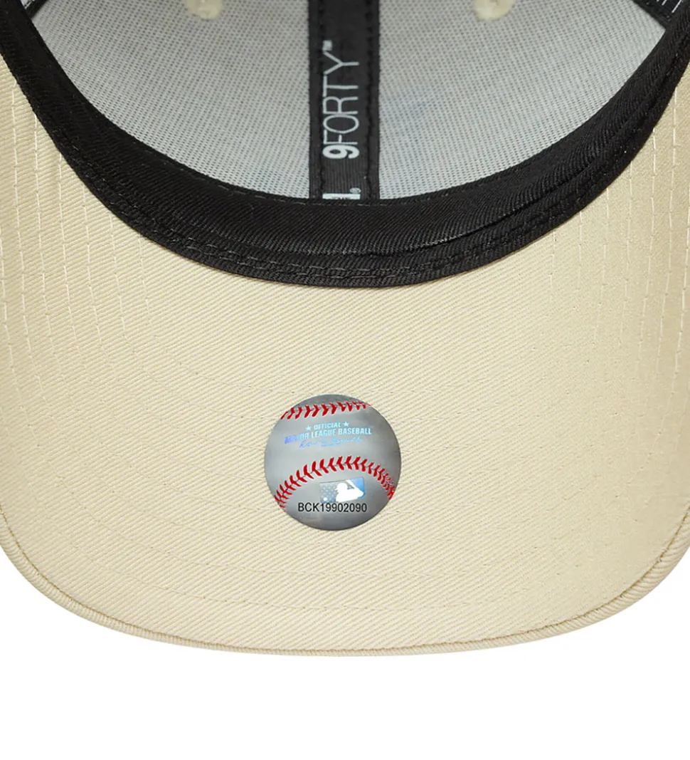 Elegant New Era kasket i cremefarvet med et stort LA-logo broderet på fronten i graduerende farve fra blå til grøn. Kasketten har en buet skygge og kan justeres i nakken med en praktisk lukning.