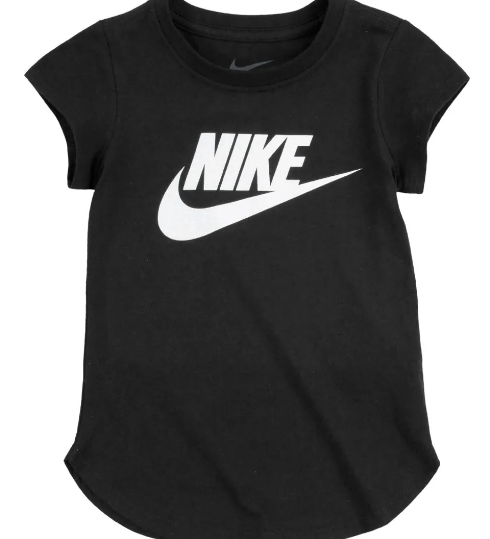 Fin Nike t-shirt i sort med et stort logoprint på brystet hvidt med glimmer.