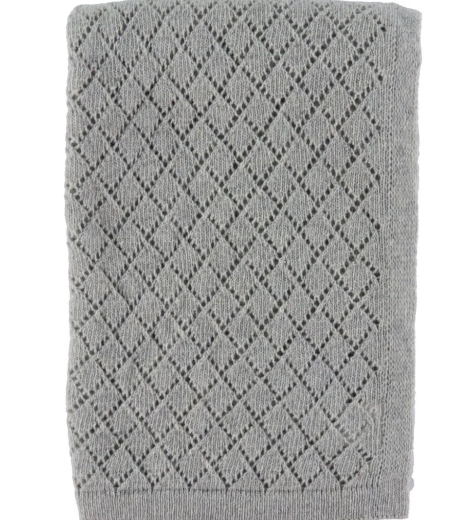 Lækkert Nørgaard Madsens tæppe i en meleret grå nuance med et elegant diamantmønster. Tæppet tilføjer en subtil charme til ethvert rum og er ideelt til at skabe et hyggeligt miljø.