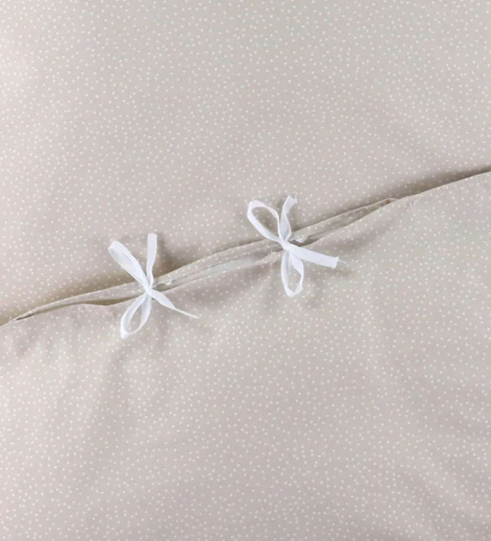 Flot Nørgaard Madsens sengetøj i mørkebeige med hvide prikker.