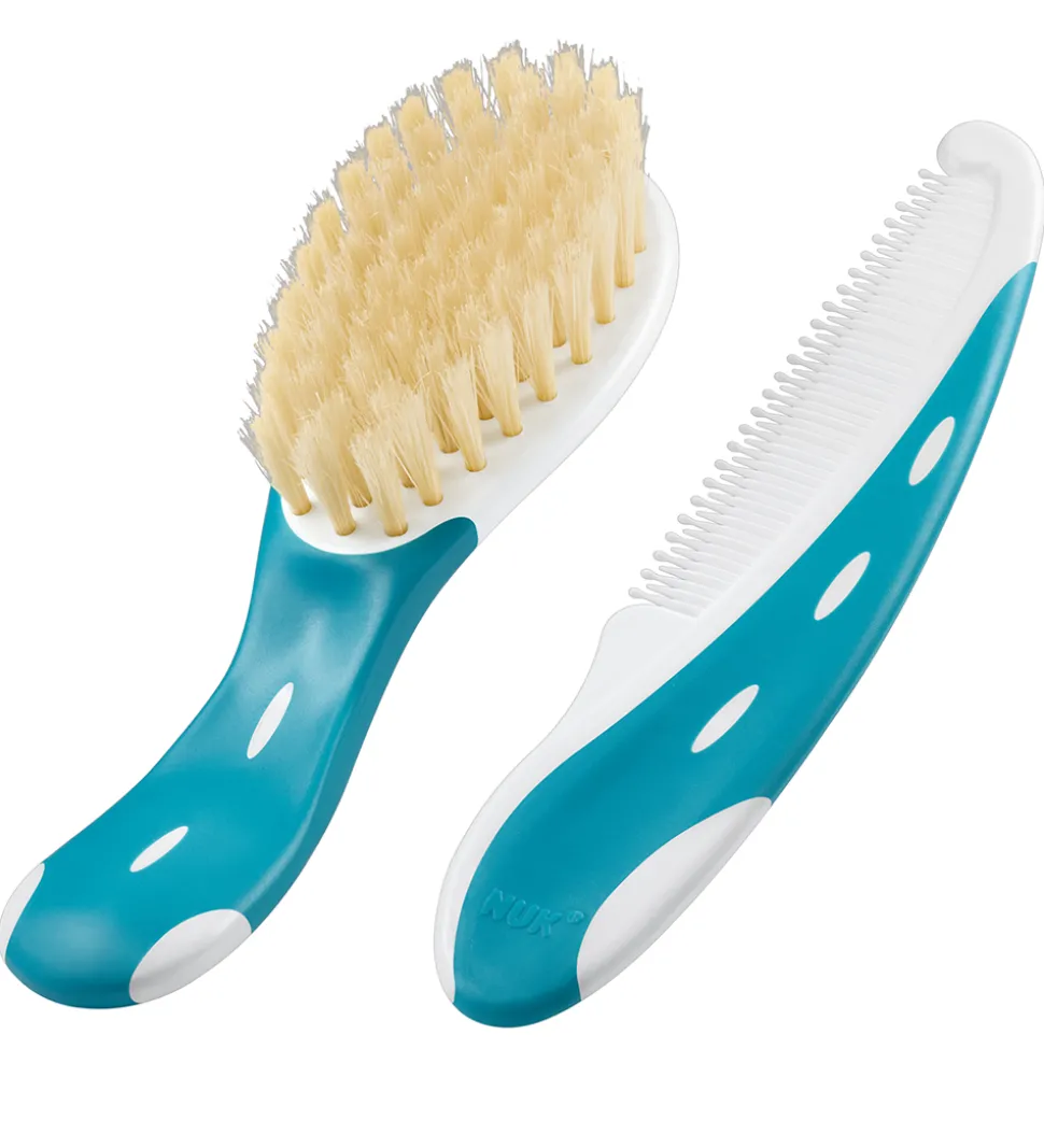 Nuk babybørste har en børste med blødt og 100 % naturligt hår, som er perfekt til børste babyer og små børns fine hår og følsomme skalp. Kammen har tænder med rundede spidser.