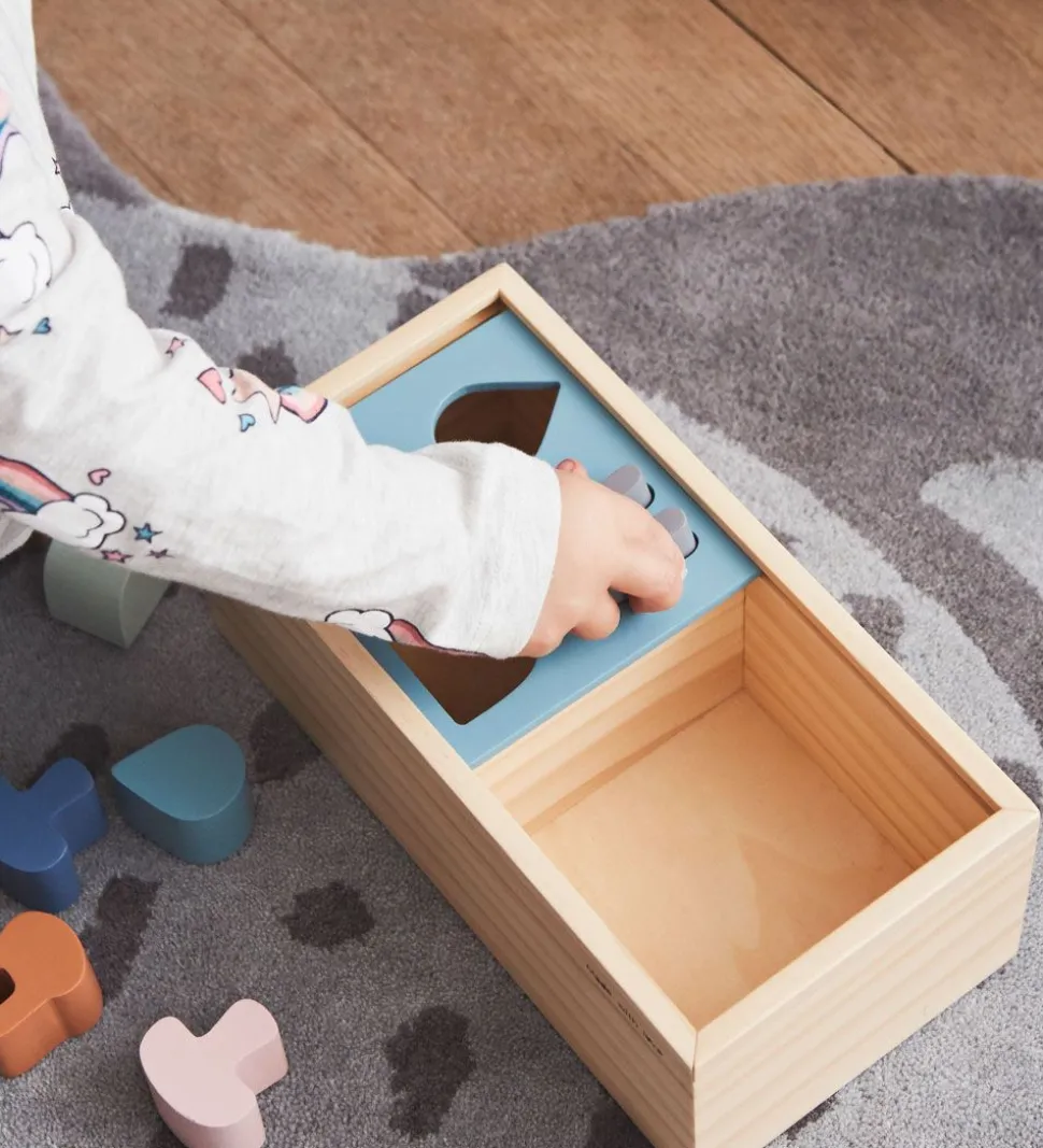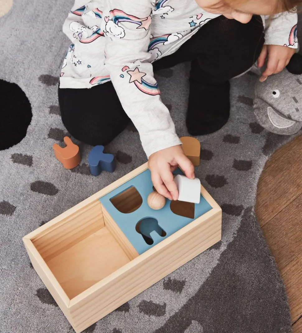 Puttekassen stimulerer bl.a. udvikling af motoriske evner og lærer børn at kunne matche og genkende figurer.