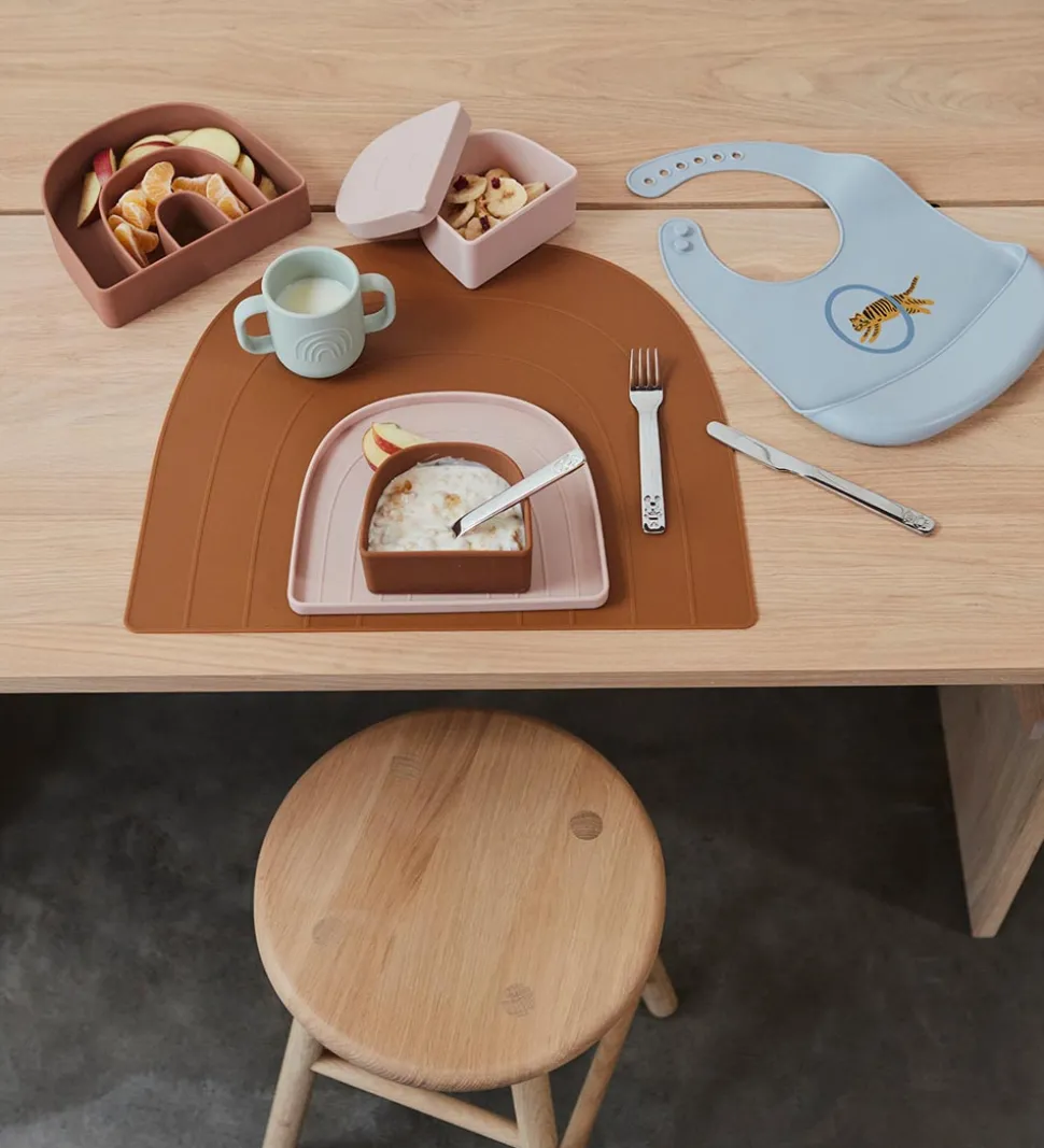 Praktisk OYOY snackskål i brun, med form som en regnbue.