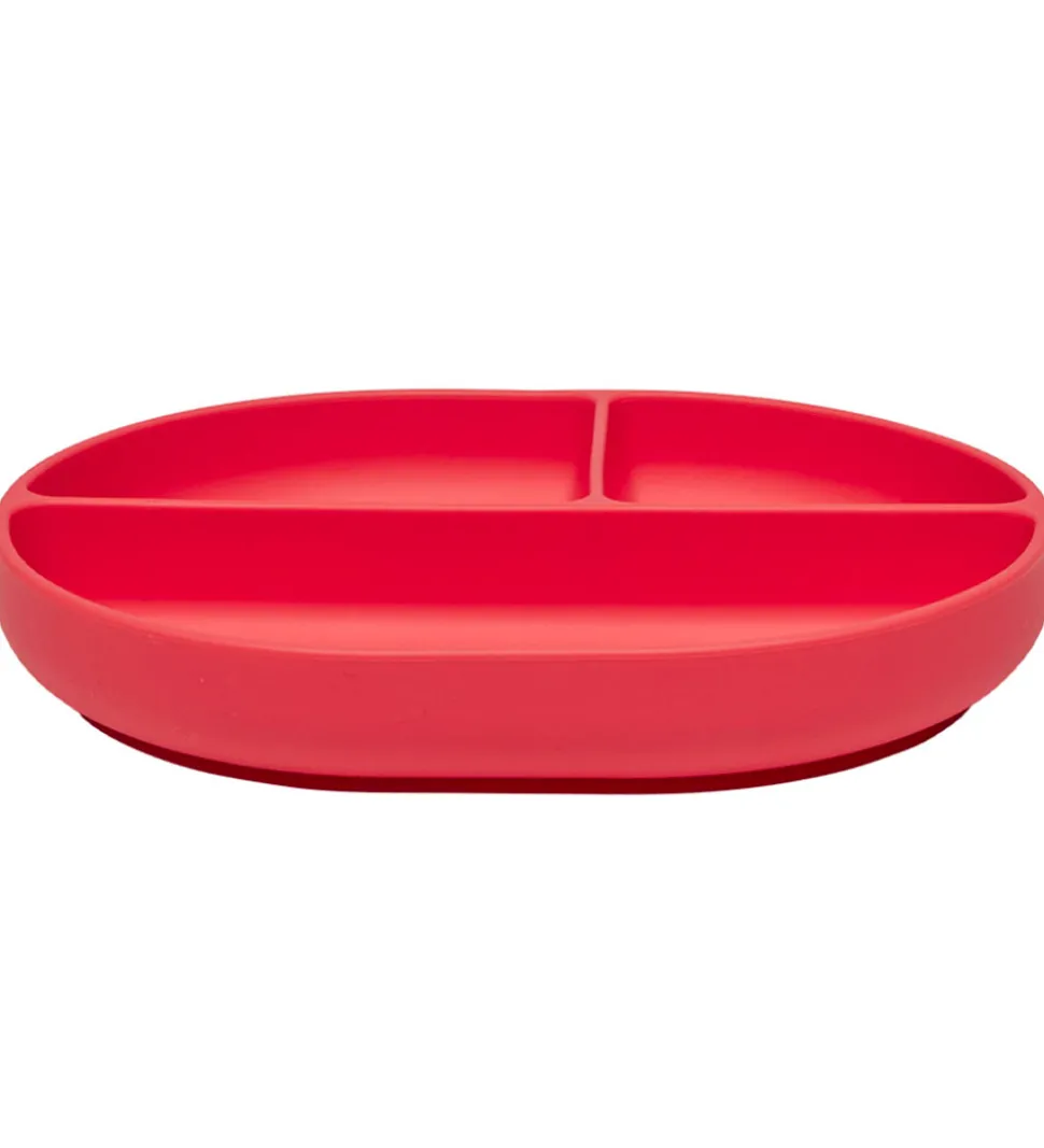 OYOY tallerkenen er under bunden udstyret med en smart sugekop, som holder fast til bordet, når barnet øver sig på at spise selv. Tallerkenen er lavet af fleksibelt silikone, og er ideel som barnets første tallerken, da materialet ikke går i stykker, samt er den inddelt i 3 rum hvilket gør det nemt at servere mad på en overskuelig måde.