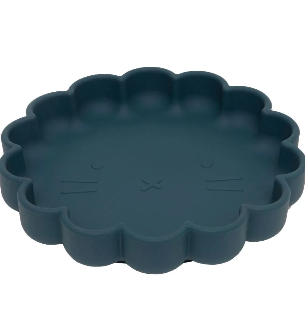 Fin Petit Monkey tallerken i mørkeblå med et løveansigt og en bølget løvemanke-kant.