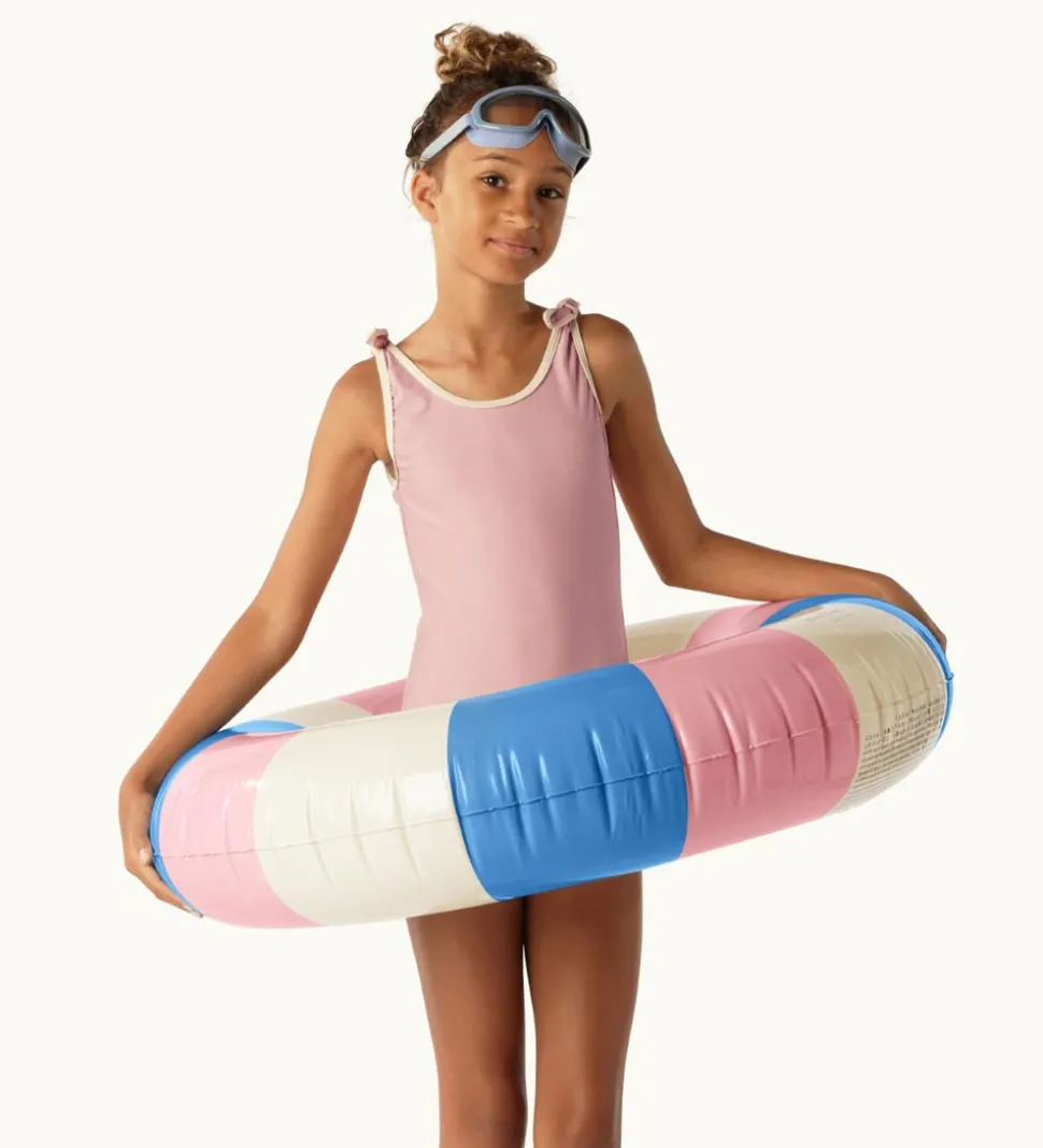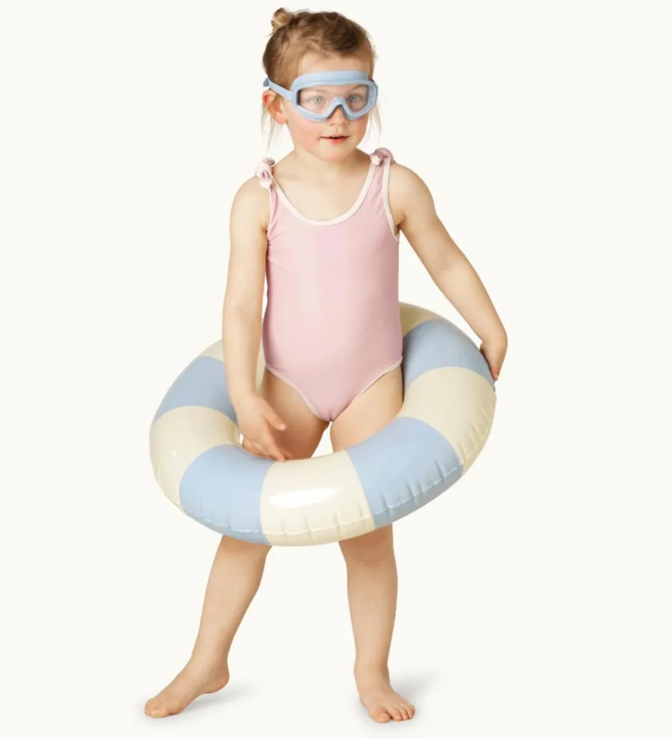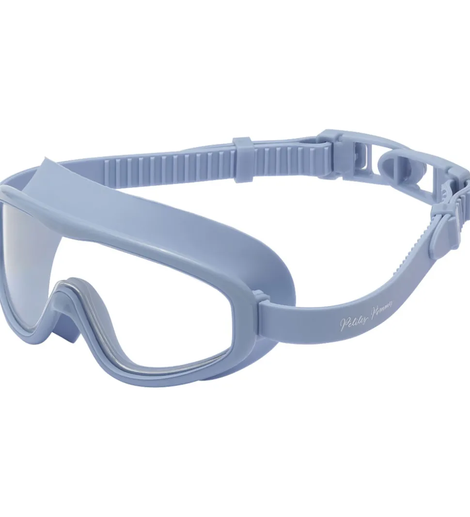 Petites Pommes svømmebrillernes maske og justerbare stropper er i letvægtssilikone, og de lukkes bag på hovedet med et praktisk plastikspænde, så den perfekte komfort og pasform findes. Svømmebrillerne består af ét stort brilleglas med anti-dug, så man får ekstra godt udsyn. Svømmebrillerne slutter tæt omkring øjnene.
