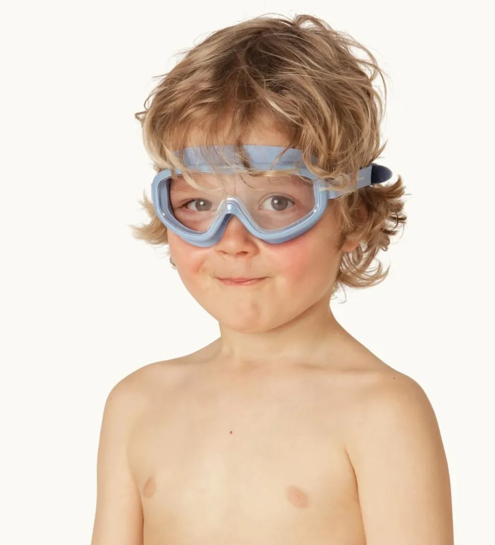 Skønne Petites Pommes svømmebriller i lyseblå med klart brilleglas.