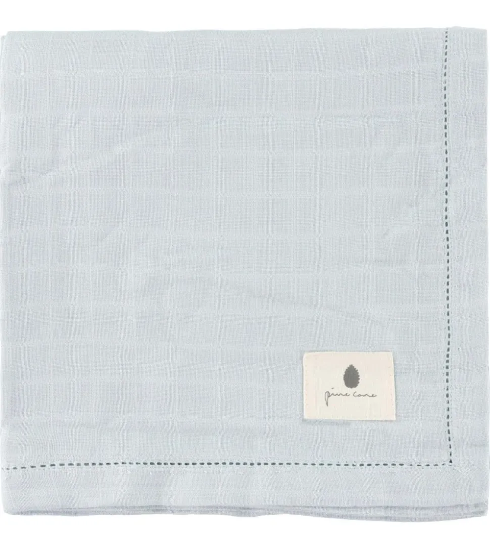 Praktisk Pine Cone babysvøb i ensfarvet lyseblå, med en fin muslin-struktur.