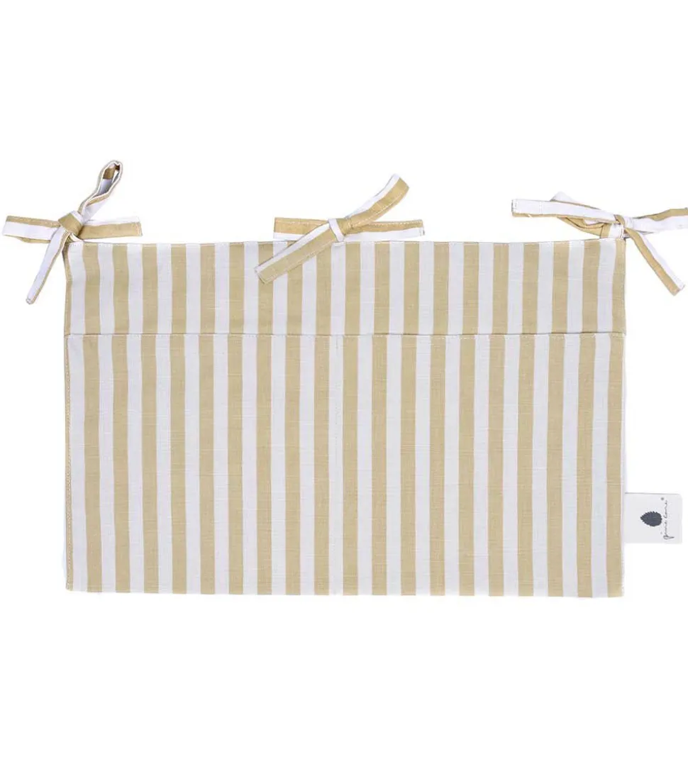Smart Pine Cone sengelomme med striber i beige og gul.