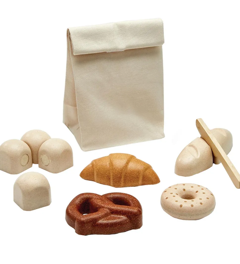 Sjovt PlanToys brødsæt indeholdende følgende: