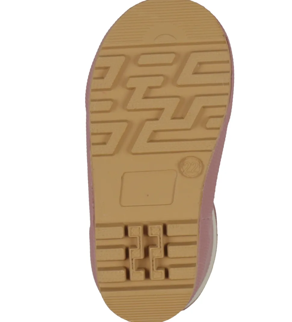 Skønne Pom Pom termostøvler i rosa og cremehvid. På ydersiden af skaftet er der også et indpræget logo.