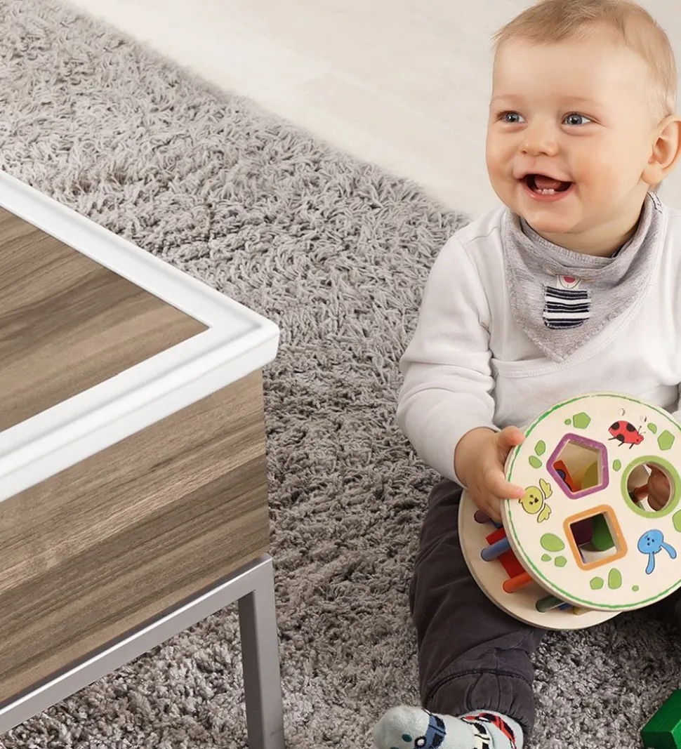 Reer kantbeskytteren sættes fast på borde, skabe, vindueskarme mm. med selvklæbende tape. Kantbeskytteren er lavet af skum, som er BPA-fri og bidesikker.