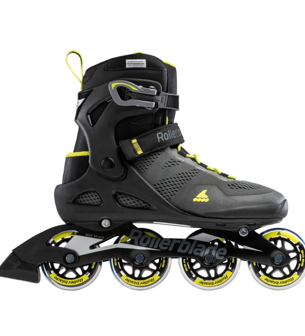 Rollerblade rulleskøjterne er en inliners-model. Skaftet er dels af blødt mesh og dels af en fast skal, så rulleskøjterne både er behagelige og stabile på samme tid. Rulleskøjterne lukkes med snørebånd, en velcrorem og en plastspænde, så de er nemme at få af og på.