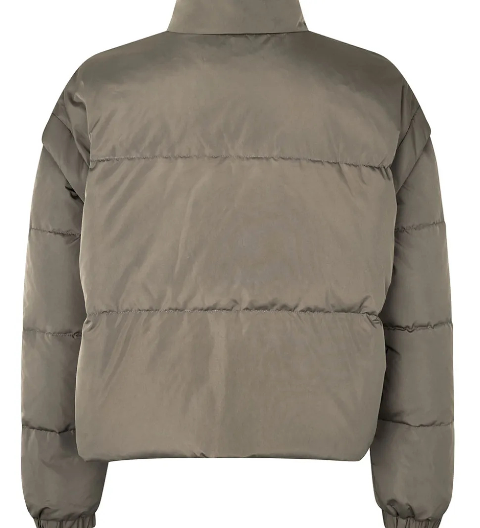 Lækker Rosemunde dynejakke i støvet grøn med vandrette syninger.