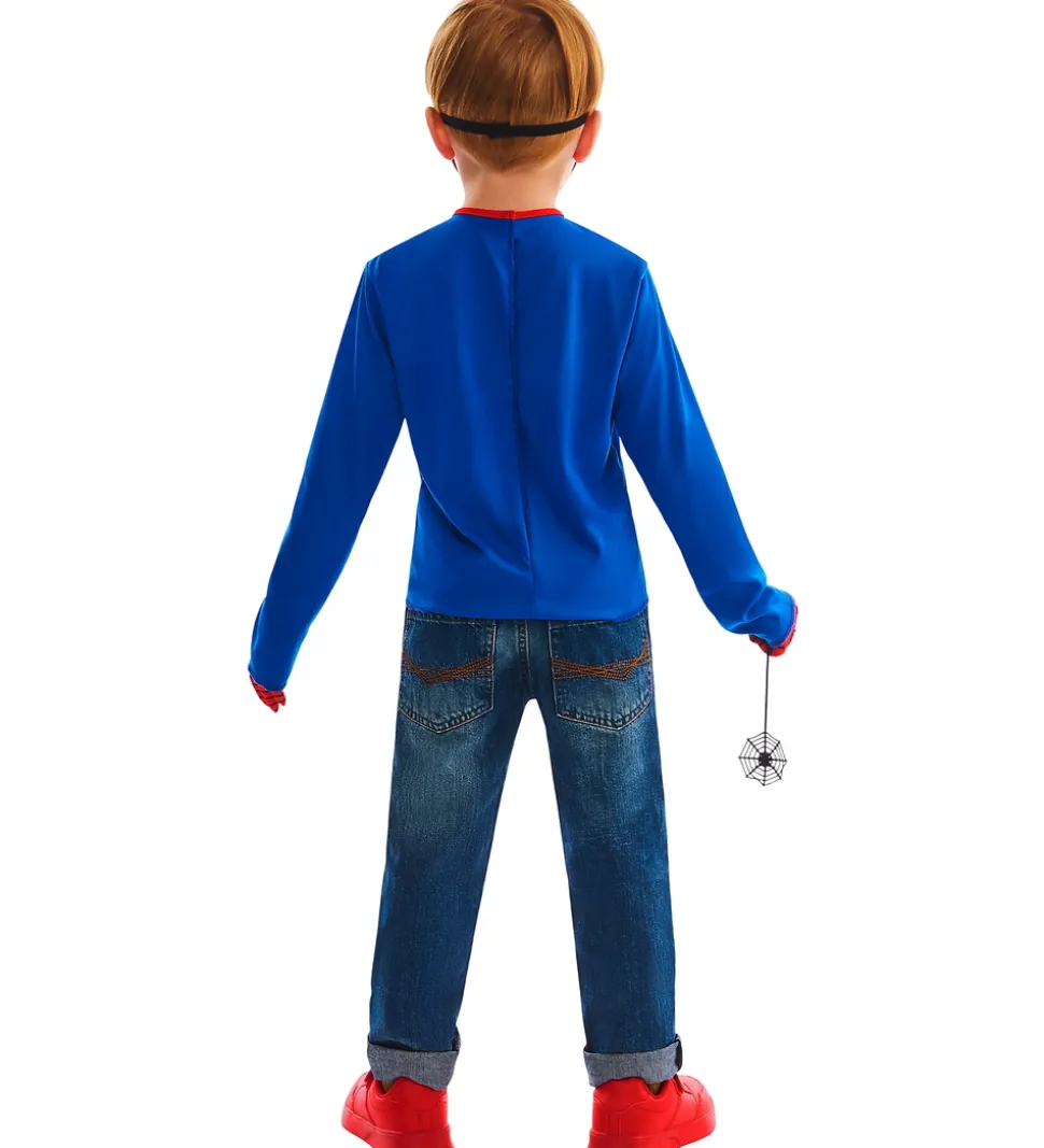 Sejt Rubies udklædning med et kostume og forskelligt tilbehør, så barnet kan klæde sig ud som Spider-man.