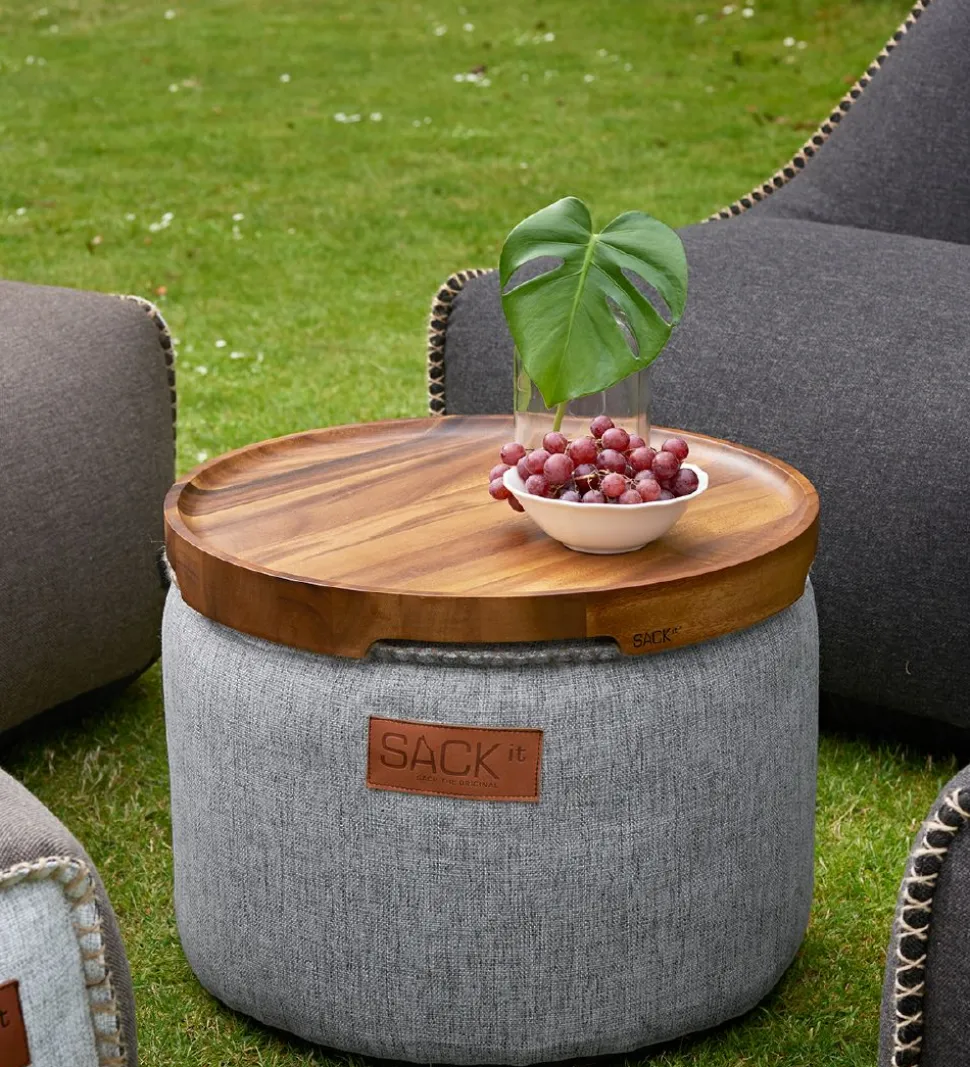 Pufffen kan først og fremmest bruges som fodskammel til en Cobana sækkestol eller til en sofa, men kombineres den med en SACKit serveringsbakke, fungerer puffen også som et lille ekstra bord.