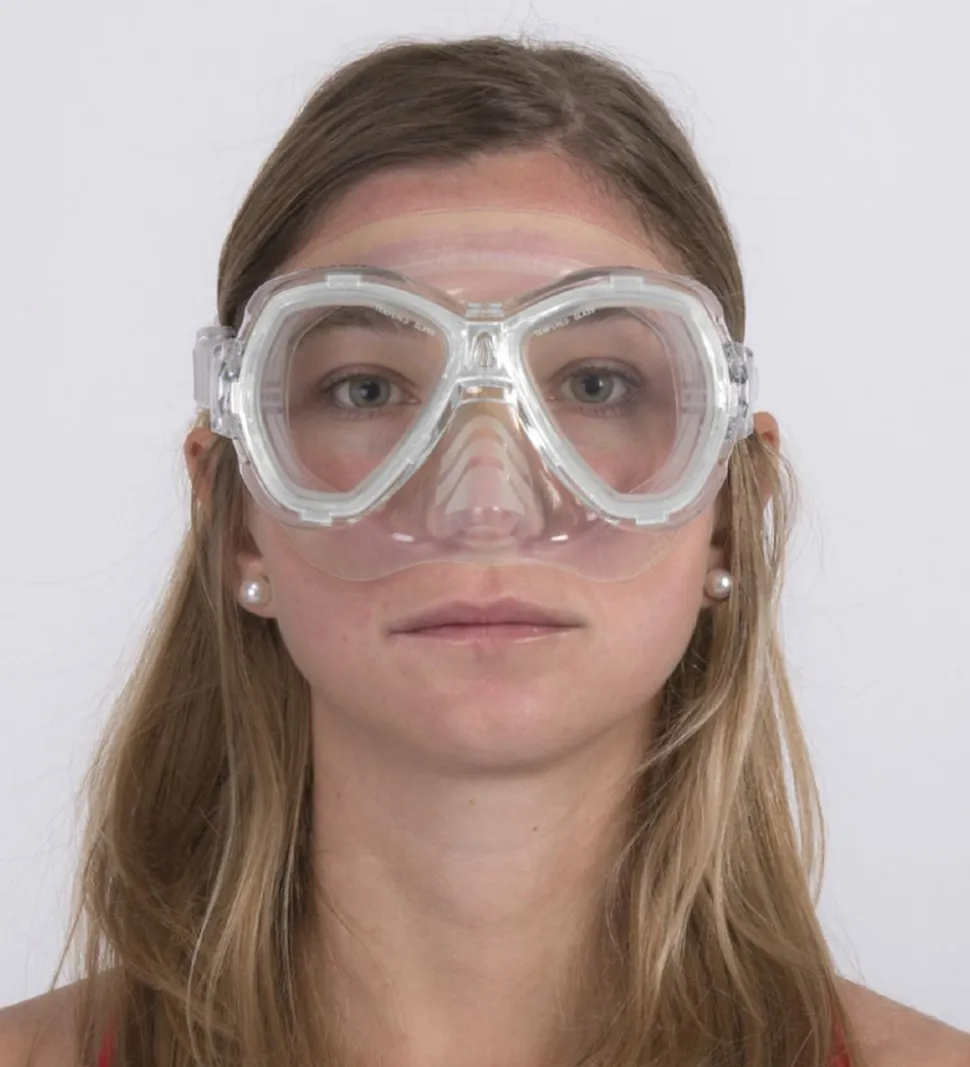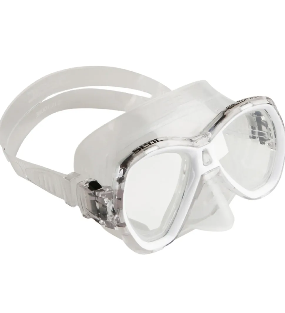 Fin Seac dykkermaske i transparent med en hvid kant langs glasset.