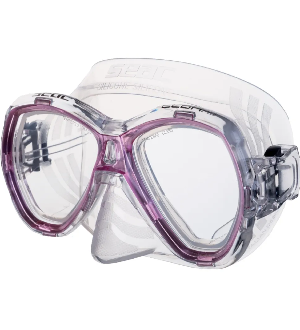 Fin Seac dykkermaske i transparent med en rosa kant langs glasset.