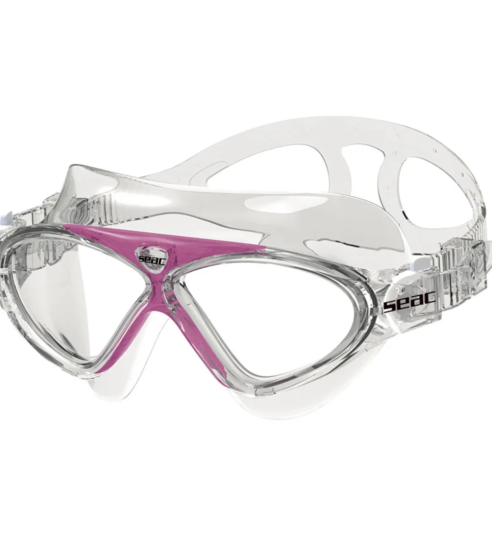 Seac svømmebrillerne er justerbare i siderne, så de er nemme at tilpasse. Dykkerbrillerne er ekstra store, så de giver et godt, bredt udsyn, og slutter tæt omkring øjnene med et silikoneskørt. Glassene er lavet af ridsefrit polykarbonat, og de har fået en behandling, så de ikke dugger til.