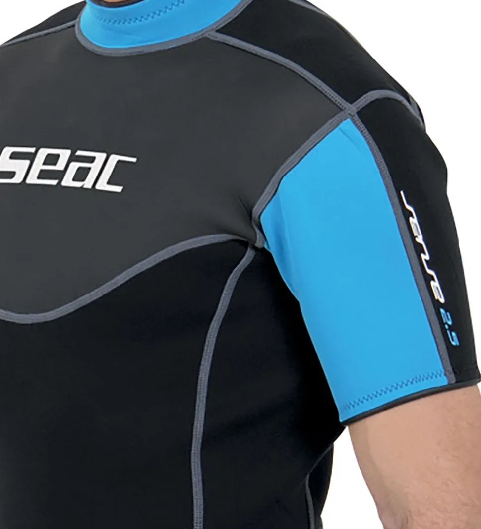 Seac våddragten har korte arme og ben samt en mellemhøj halskrave med velcrolukning og åbnes bagtil ved hjælp af en lynlås ned langs ryggen. Våddagten har i hals og armområderne indsatser af ekstra blødt materiale med “AquaStop”-effekt, som mindsker mængden af vand, der kommer ind i dragten.
