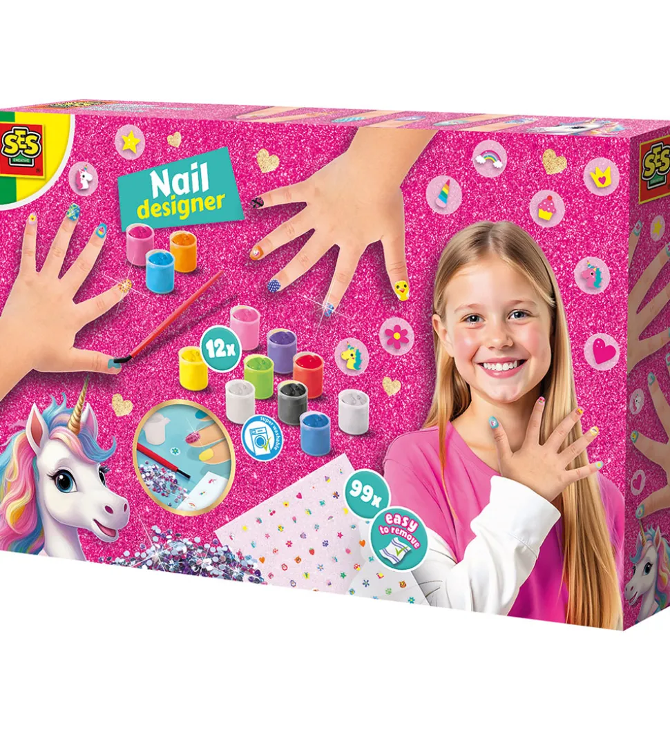 Farverigt SES Creative kreasæt til at dekorere negle. Kreasættet indeholder følgende:
